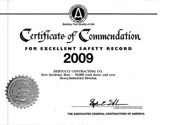 Because our employees are our greatest asset, safety has always been paramount at Bertucci. We have developed systems, procedures and a “Safety Culture” that has allowed us to have an extremely safe workplace in what can be a difficult work environment. Elements of our safety manual include: