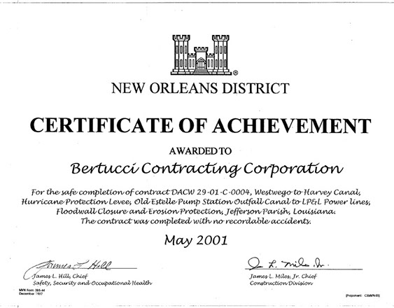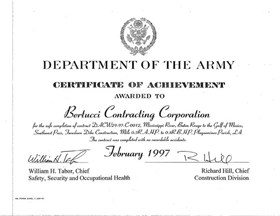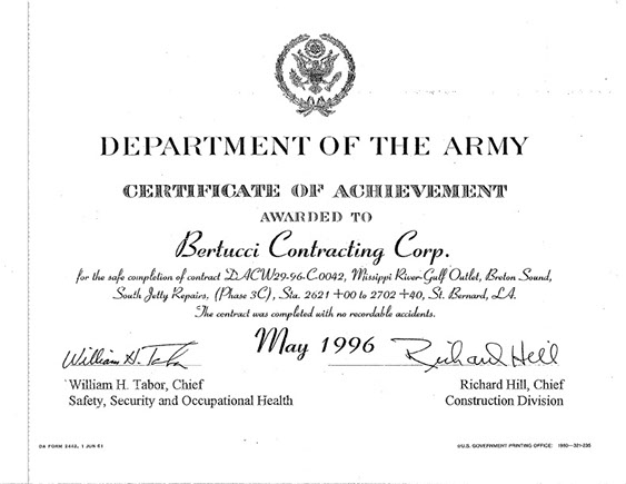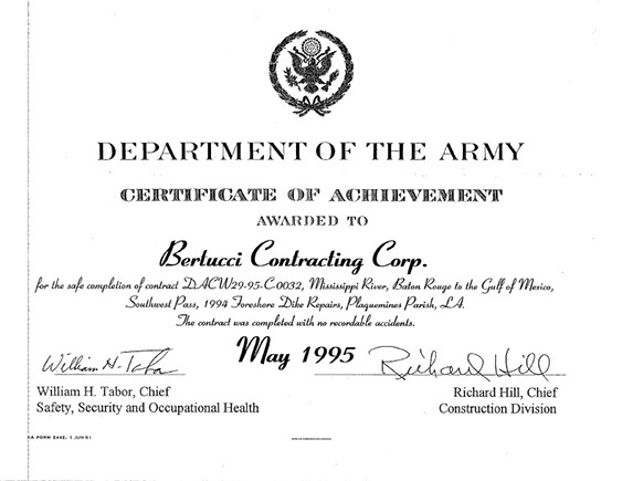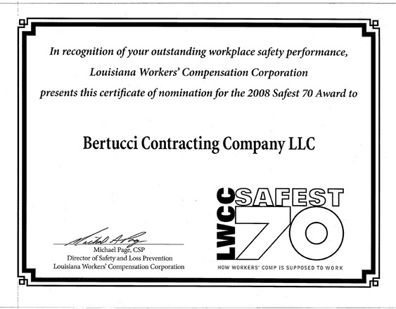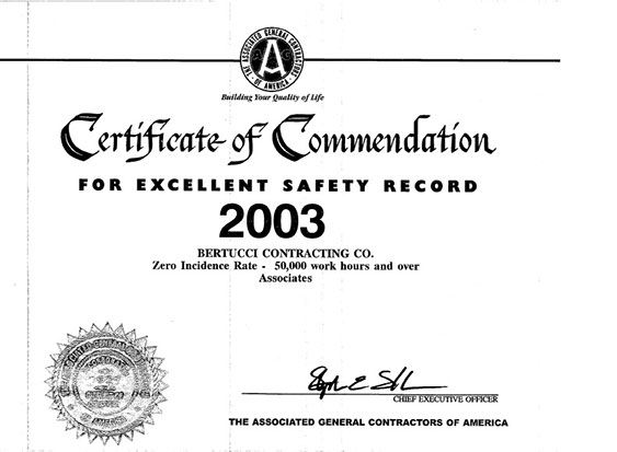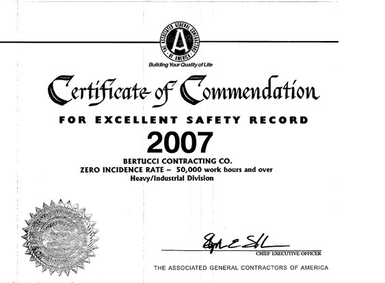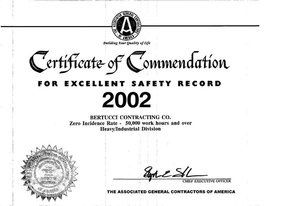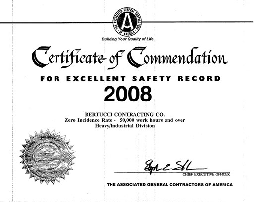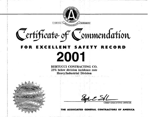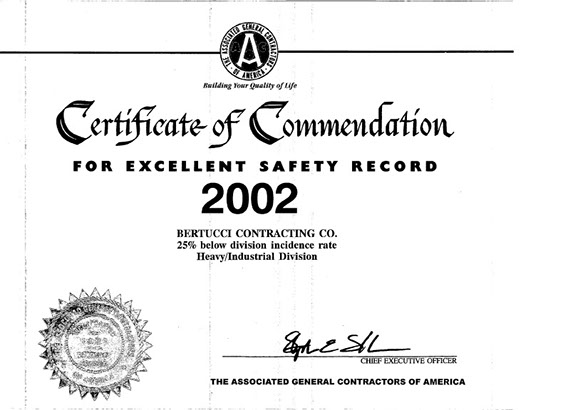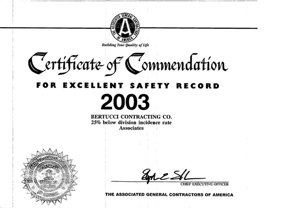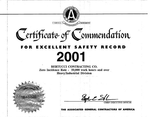 Because our employees are our greatest asset, safety has always been paramount at Bertucci. We have developed systems, procedures and a “Safety Culture” that has allowed us to have an extremely safe workplace in what can be a difficult work environment. Elements of our safety manual include: